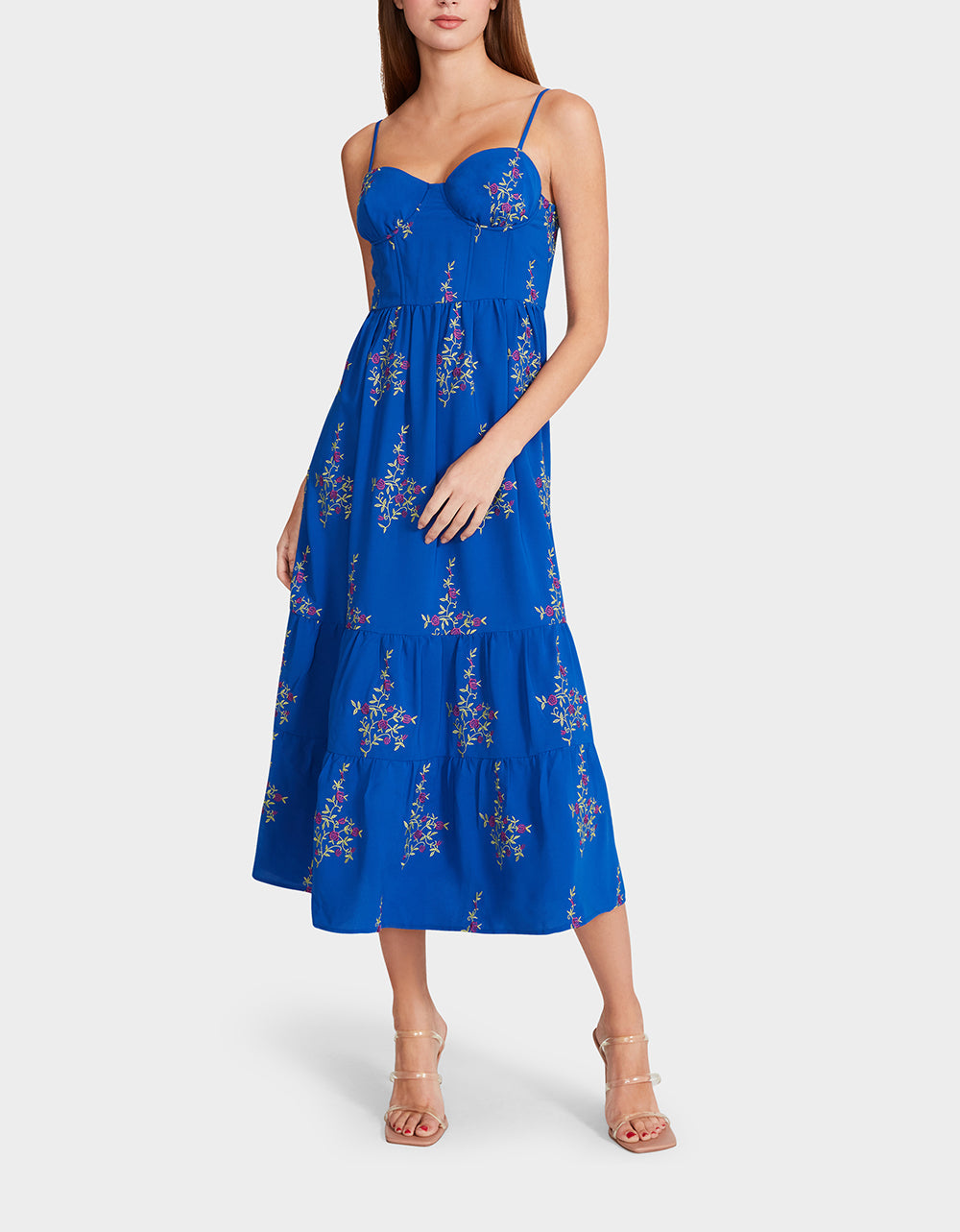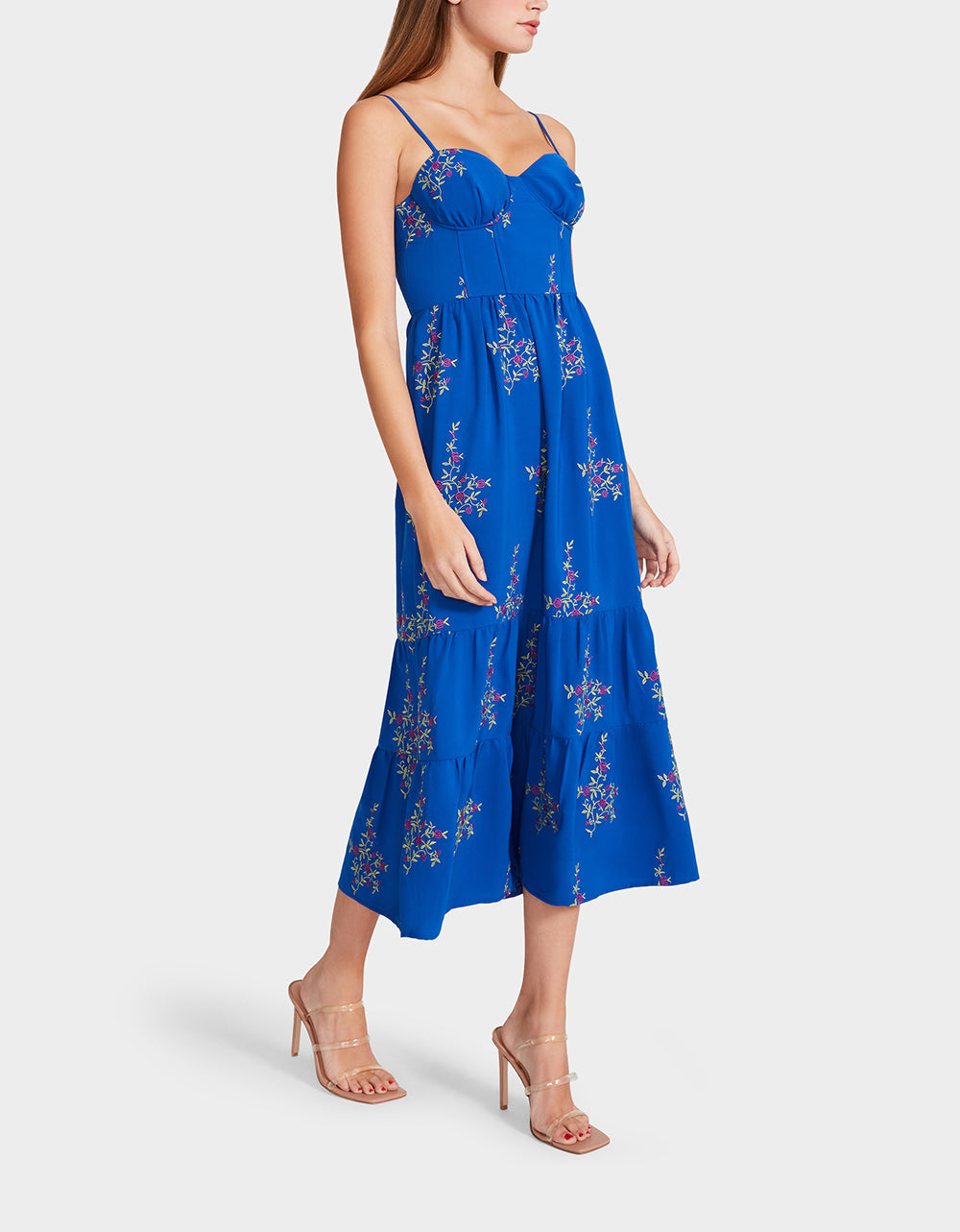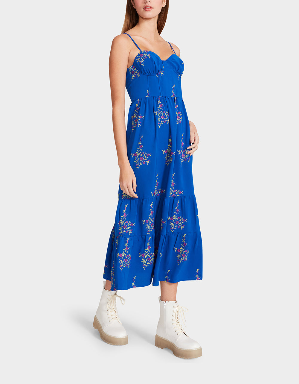 VINTAGE FLORAL BUSTIER MIDI DRESS BLUE | RE:LUV