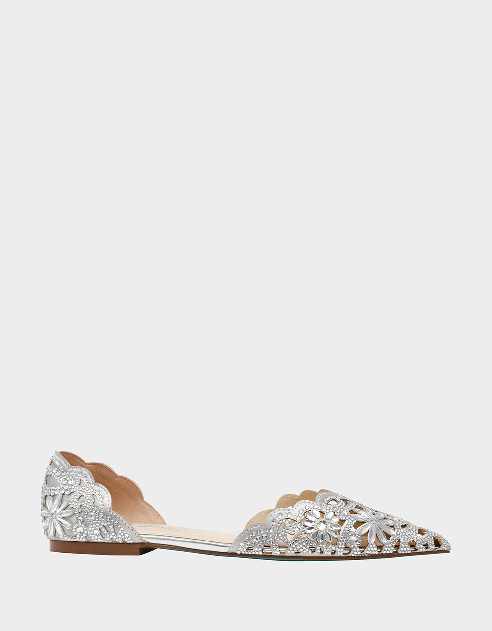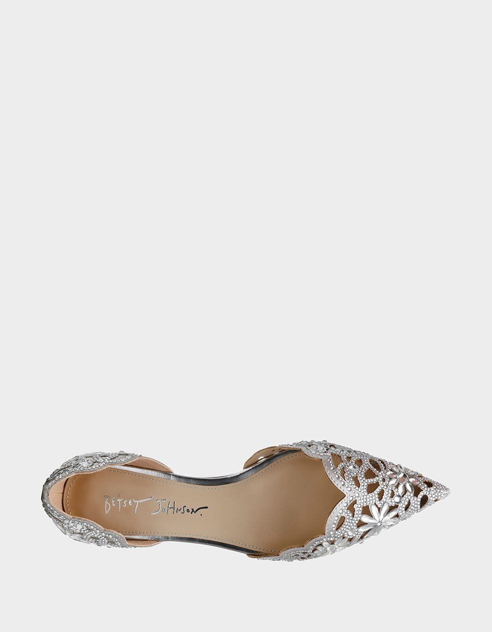 This ballet boasts a timeless silhouette. complete with intricate cut out details. a pointed toe. and a dazzling display of? for added flair.